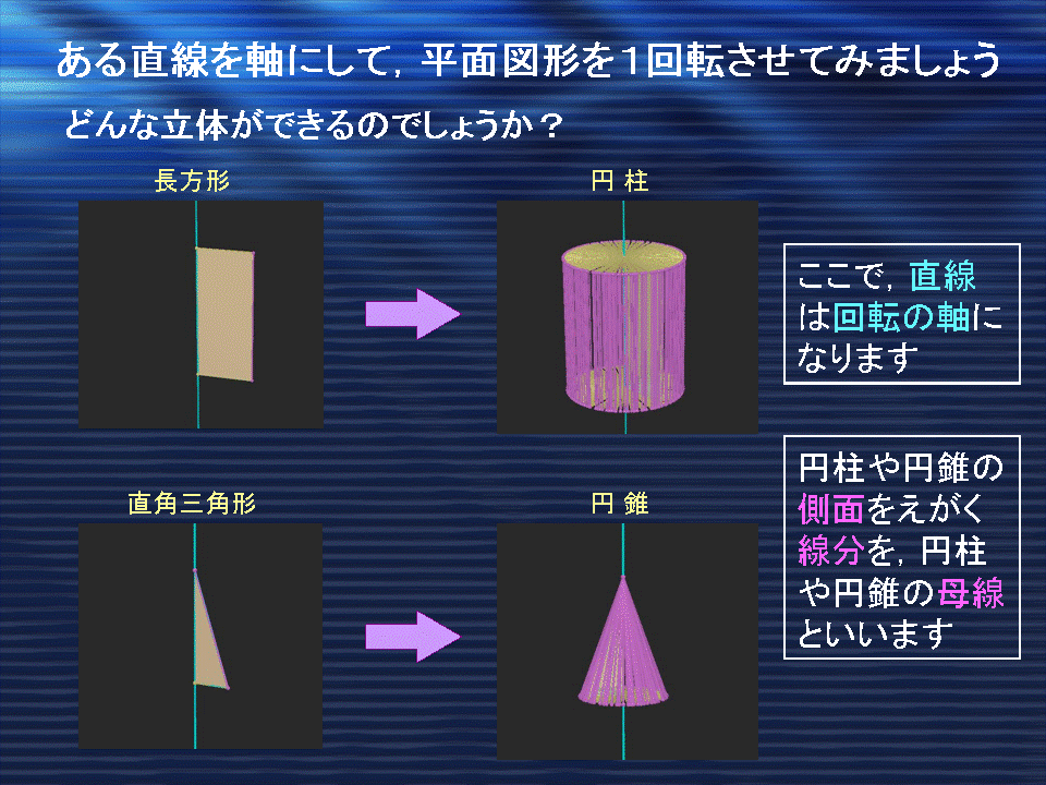 中学校1年:空間図形(2直線の位置関係,回転体)