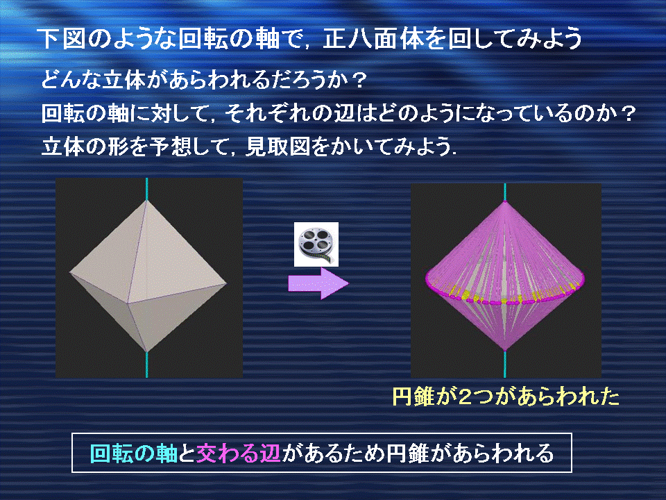 ※このコンテンツには,Cabri3Dを用いて作成された動画が含まれています。生徒が予想したことや そのスライドでおさえておきたい内容を,その動画で確認していきます。